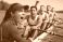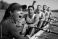 Obraz Sport - Intense female coxswain leads focused rowing team during race on calm water under daylight with... #1657530626