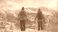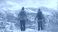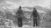 • Two tourists skiing among snow-covered mountains, suitable for travel blogs, sports equipment advertising, and articles about winter vacations.