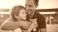 • Proud father embraces his young son holding a golden trophy after a successful sports event