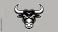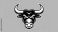• Monochromatic vector illustration of a fierce bull's head, designed as a powerful sports mascot or emblem.