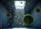 • Abstract tennis ball rain falling from above in a room, conceptual sport art, surreal scene
