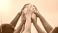 • Diversity, team and hands together in sports on rugby ball for support, motivation or goals outdoors. Hand of sport group unity in fitness, teamwork or success for match preparation or game
