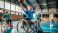 • Group of children playing basketball in a gymnasium, with a focus on a joyful child in a wheelchair, raising arms in victory. The image promotes inclusivity, determination, and the joy of sports