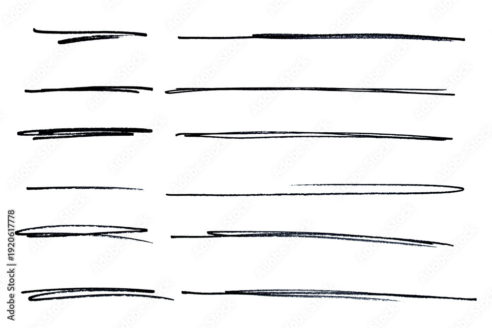 • Set of black hand drawn marker pen stroke line transparent background design element doodle scribble underline