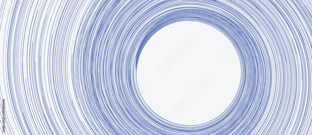 • Blue abstract circular lines forming a vortex on light background. Minimalist vector illustration of digital data flow and cosmic energy rotation.