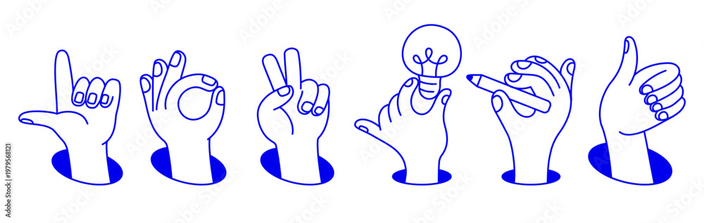 Obrazy Fantasy - Vector hand drawn gesture, doodle sketchy illustration, sign, hand showing approve, pointing gesture #1979568121