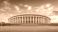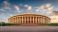 • Wide Angle View of Indian Parliament House During Golden Hour with Dramatic Sky and Clouds