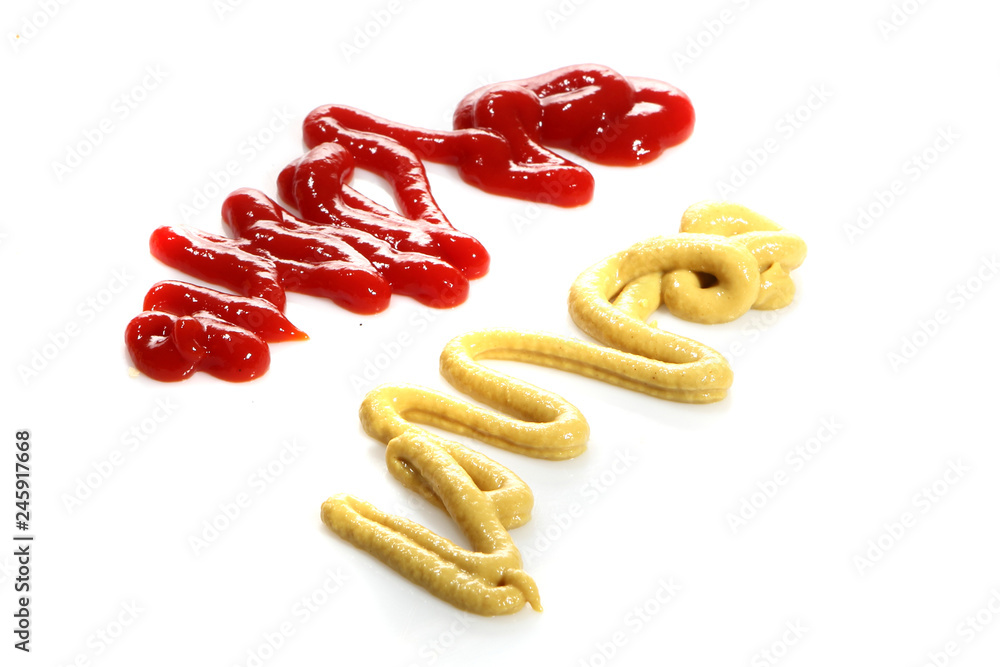 Obrazy Plamy - Ketchup i musztarda. Sosy na białym tle. #245917668