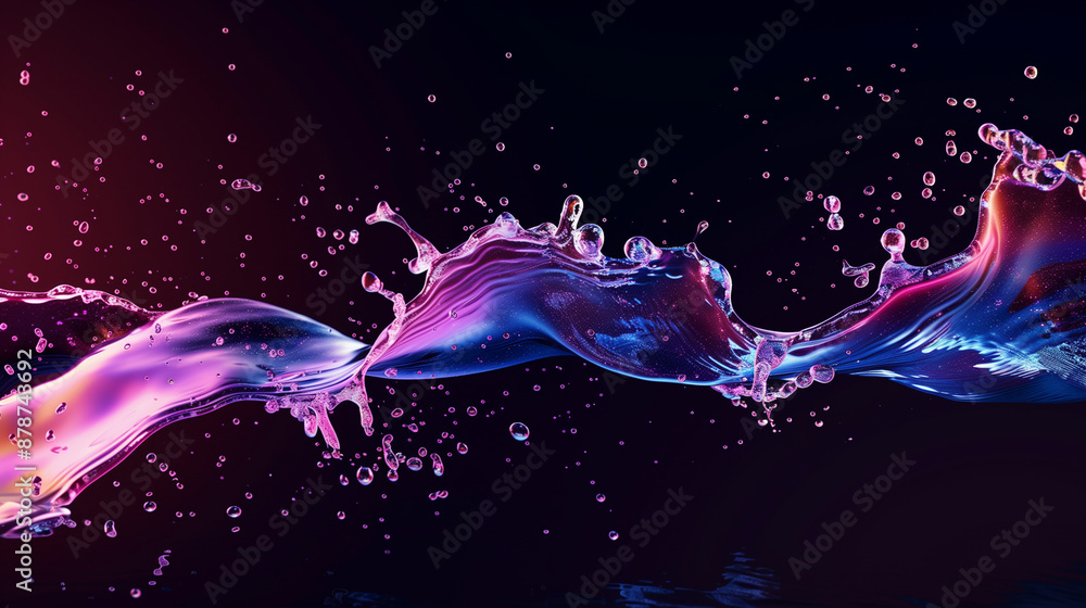 • Kolorowa niebieska różowa plama z atramentu alkoholowego na czarnym tle - wyizolowana. Rozchlapane barwne krople wody farby w dynamicznym ujęciu. Sztuka