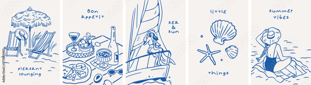 Obrazy Bajki - Dolce Vita doodle card designs. Italian summer vacation posters set. Sketch drawings, holiday sea... #1778860403