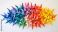 • An abstract arrangement of multi-colored origami cranes forming a unified, intricate mosaic on a clean surface