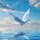 Obrazy Origami - White origami bird soaring above placid water #1467003022