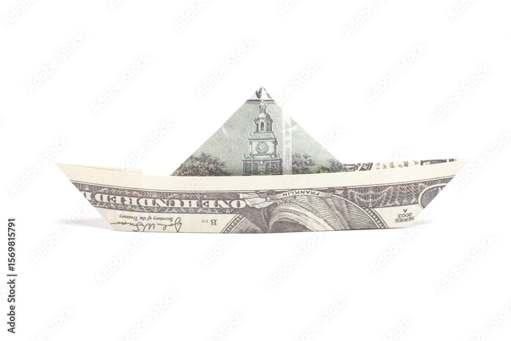 Obrazy Origami - Money Origami boat with one hundred Dollar bills #1569815791