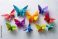 • Colorful origami butterflies arranged creatively on a flat surface indoors during daylight, showcasing various vibrant colors and intricate designs
