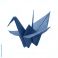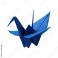 • Isolated blue origami crane, symbol of peace, hope and healing on black background