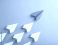 • A red paper airplane leading a group of white paper airplanes, symbolizing leadership and individuality.