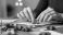 Obrazy Origami - Woman creating colorful origami paper crafts at home, hands close up #1696173602
