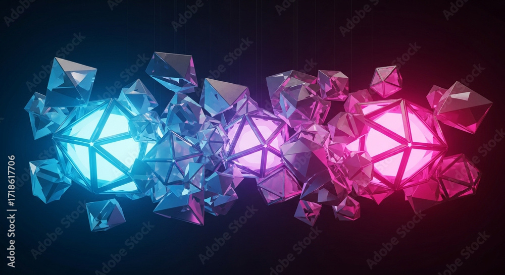 Obrazy Origami - Glowing orbs & crystals illustration #1718617706