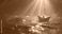 • Serene paper boat gently floating on the water surface, illuminated by soft, atmospheric light rays piercing through the atmospheric elements, conveying a sense of tranquility and peacefulness with...