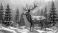 • Stunning golden origami deer stands majestically amidst a serene winter forest landscape with misty backdrop