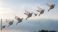 • Elegant arrangement of white origami doves in midair, suspended by invisible threads against a blurred sky background, with gentle natural light and subtle lens flare to represent peace.