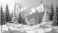 Obrazy Origami - Stylized winter scene with white paper deer amidst snow, trees, and mountains, illuminated by... #1848726036