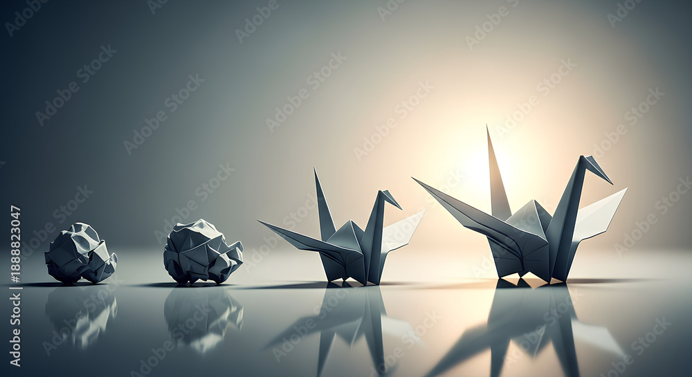 Obrazy Origami - Origami Cranes Transformation Process #1888823047