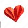 • A bright red folded paper heart crafted in an origami inspired style with sharp precise creases, clean edges, matte paper texture, and subtle shadowing that enhances its handcrafted emotional characte