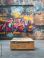 • Empty display podium in an urban space with graffiti walls. Street art, youth culture concept with copy space.