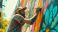 • A photo of a street artist painting a mural, captured candidly in action, with vibrant colors and intricate designs, and a sense of urban culture and creativity.