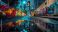• Night street of Sao Paulo, Brazil. A deserted area, modern buildings, street graffiti. Bright lanterns and shadows of skyscrapers, reflections of lights and graffiti in puddles create dynamism.