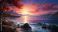 Obrazy Kamień - piękny widok zachodzącego słońca ze złoćistymi falami #683061530
