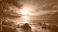 • piękny widok zachodzącego słońca ze złoćistymi falami