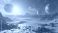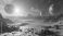 • Surreal landscape with planets and suns setting over a rocky terrain