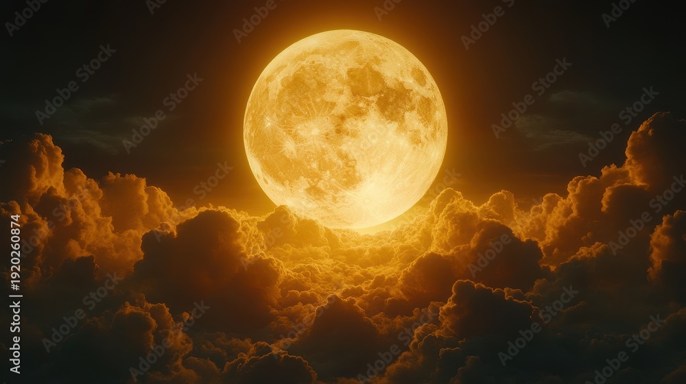 Obrazy Kosmos - Golden Moon Through Clouds at Night #1920260874