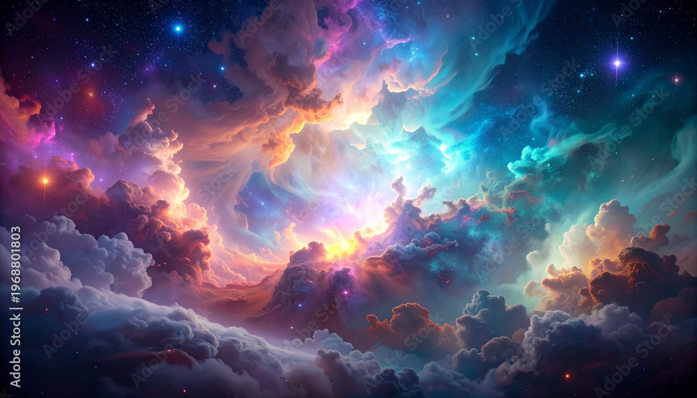 Obrazy Kosmos - Cosmic cloudscape with stars and light #1968801803