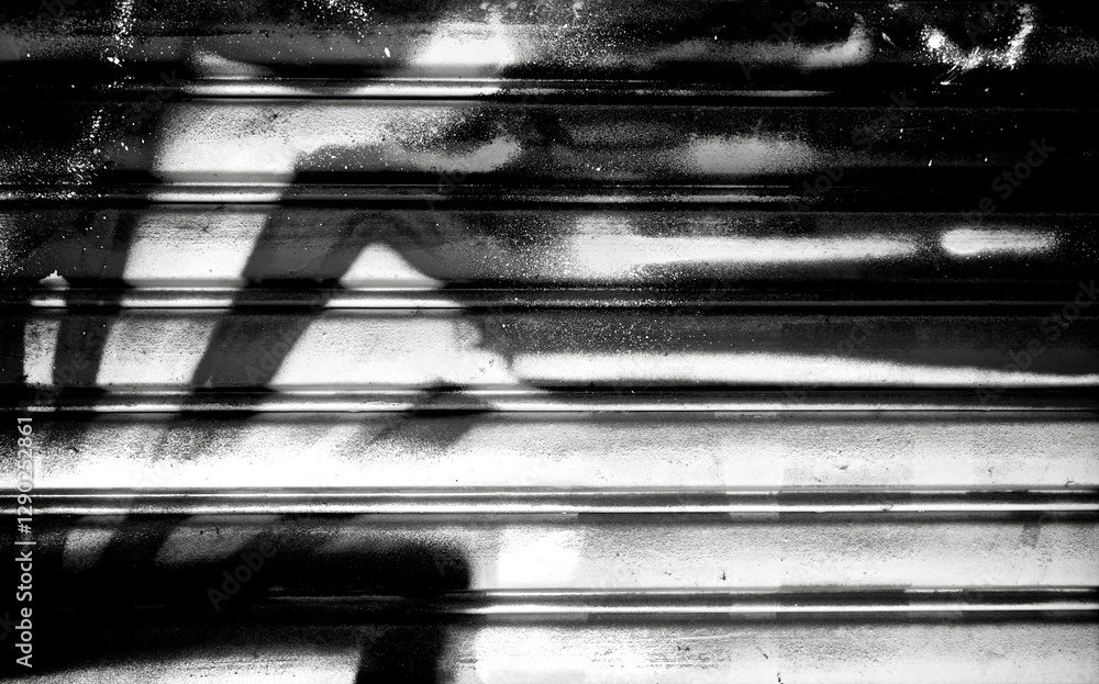 • Abstract spray painting on metal door wall background. Rustic and grunge texture urban. Street and Fashion. Black and white color. Close up.