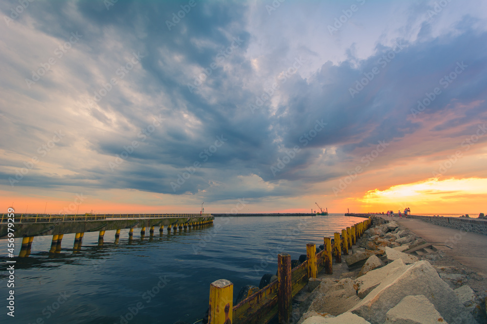 • Zachód słońca nad Morzem Bałtyckim w miejscowości Wicie