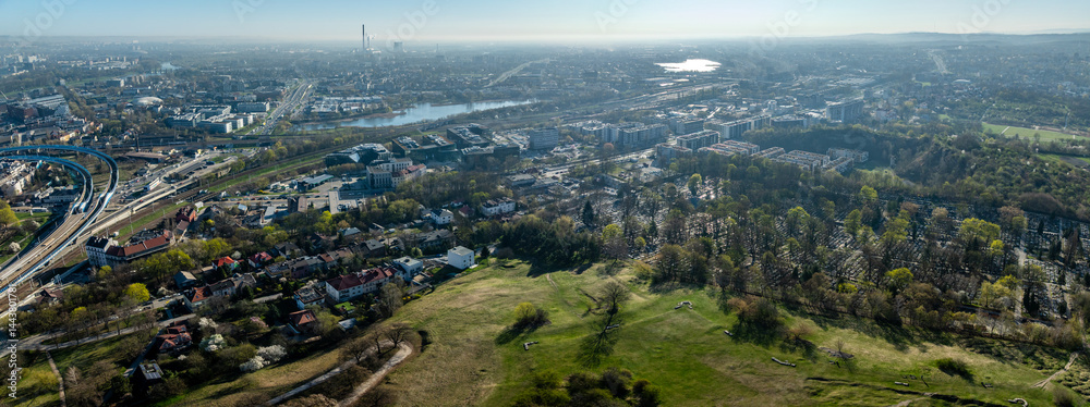 Naklejki Panorama - Panorama miasta Kraków z powietrza #1443801781