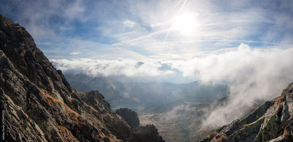 • Panorama dynamicznej pogody w Dolinie Pięciu Stawów Polskich, Tatry Wysokie.