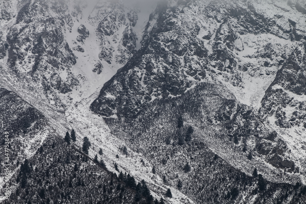 Kamień - Zamglone góry z ośnieżonymi szczytami #347753849