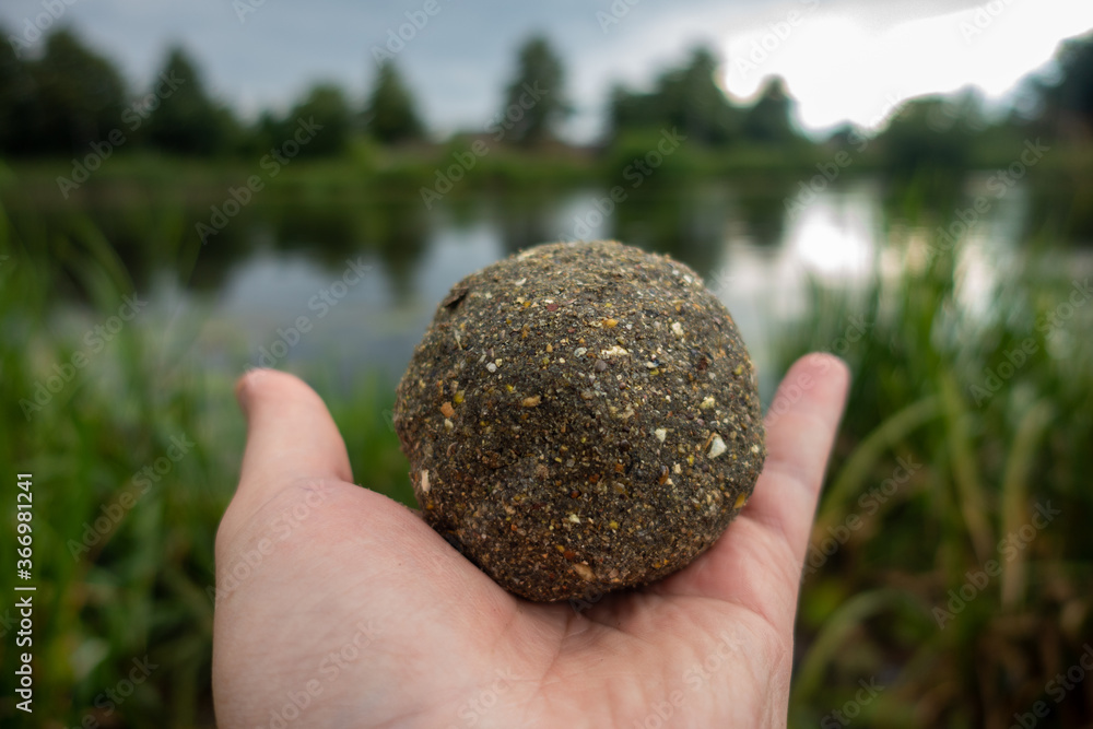 Kamień - Groundbait balls ready for baiting fish. Fishing groundbait. Kule zanętowe gotowe do nęcenia... #366981241