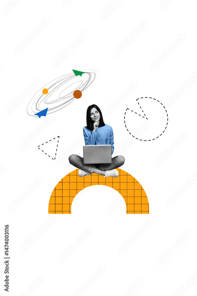 Góry - Vertical creative composite photo collage of clever intelligent girl sit with laptop think... #1474003116