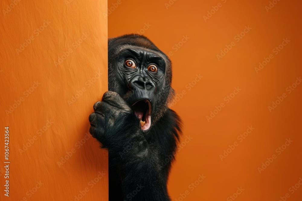 Zwierzęta - Photo of shocked gorilla wildlife animal mammal. #1067423564