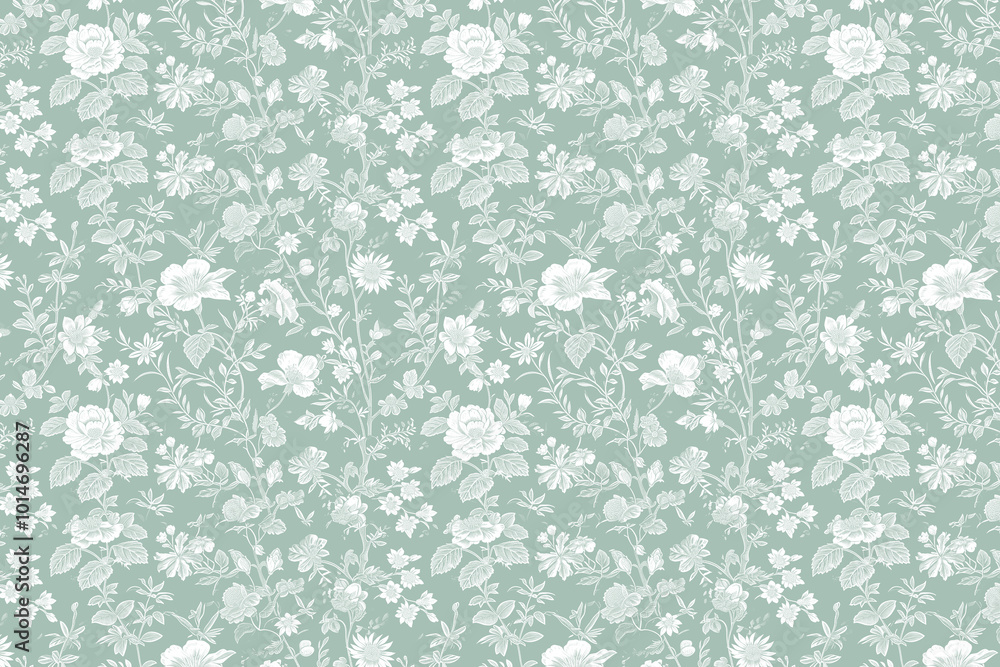 Obrazy Turkus - Toile floral pattern tapestry. Vintage monochrome botanical wallpaper pattern. Background image.... #1014696287