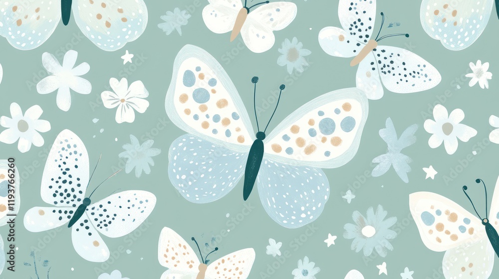 Obrazy Turkus - Pastel butterflies floral seamless pattern design textile #1193766260