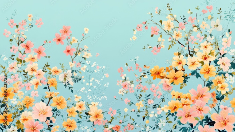 Obrazy Turkus - Delicate floral pattern on a light teal backdrop. #1495221733