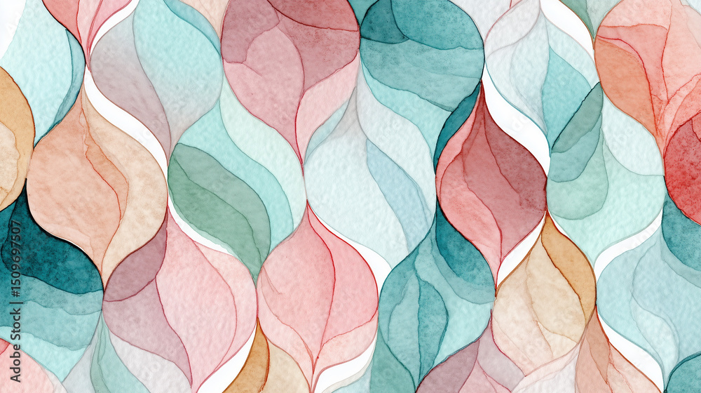 Obrazy Turkus - Watercolor leaf pattern background for wallpaper #1509697507