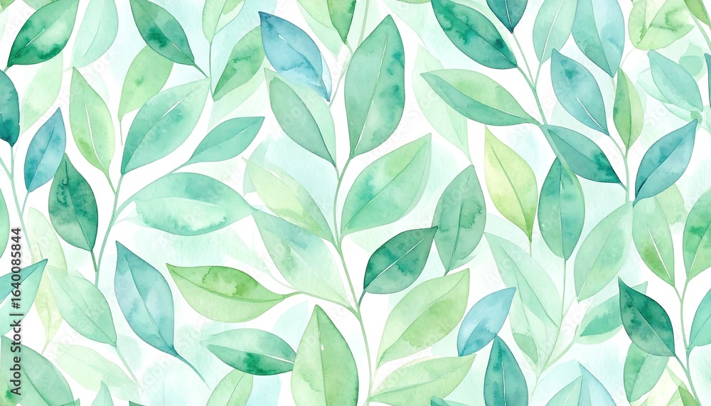 Obrazy Turkus - Soft watercolor leaf pattern background #1640085844