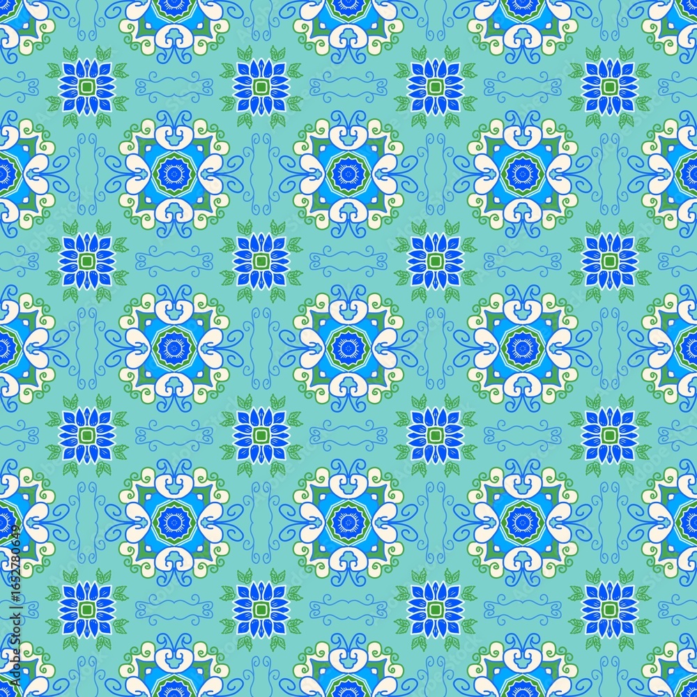 Obrazy Turkus - seamless pattern with blue flowers #1652780649